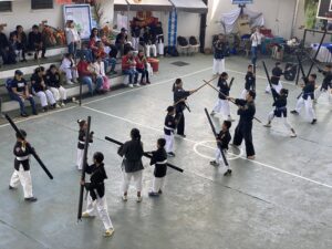 古武道では、棒の準備運動と基本動作から始まり、大城の棍、周氏の棍小、佐久川の棍小、周氏の棍大を皆で演武。大きな気合いと迫力ある動きに、観客からも温かい拍手が送られました👏さらに、実戦琉球古武道軟式組手の基本動作と組手も行い、子どもから大人まで多くの方が参加。今回初めて人前での実演にも関わらず堂々とした姿に感動しました。