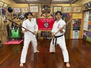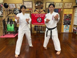 本日、台湾から来られた女性が空手・古武道体験に参加されました🥋✨ 基本動作から始まり、上地流の平手廻し受け、型三戦、さらに古武道では棒の基本、大城の棍、ヌンチャク基本動作、そして琉成ヌンチャクまで幅広く体験! 柔道や弓道のご経験があり、動きの習得も早く、とても筋が良い方でした👏また沖縄にお越しの際はぜひお待ちしております😊