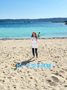 🇺🇸本日アメリカから観光の方にビーチ空手体験🥋 西原きらきらビーチで約1時間、空手の基本動作(突き・蹴り・受け)をはじめ、三戦の運足・貫手、突き受けの移動稽古を行いました。 三戦の型は、身体・呼吸・心の三つを統一し、鍛錬するための基本です。波音を聞きながら、周囲に人の少ない環境で集中して稽古することができ、とても良い時間となりました 🌊✨ 武道初心者の方でも、 気軽に体験できる内容となっています。 こちらのビーチ空手体験は、 ジャンボツアーズ様のサイトよりお申込み可能です。